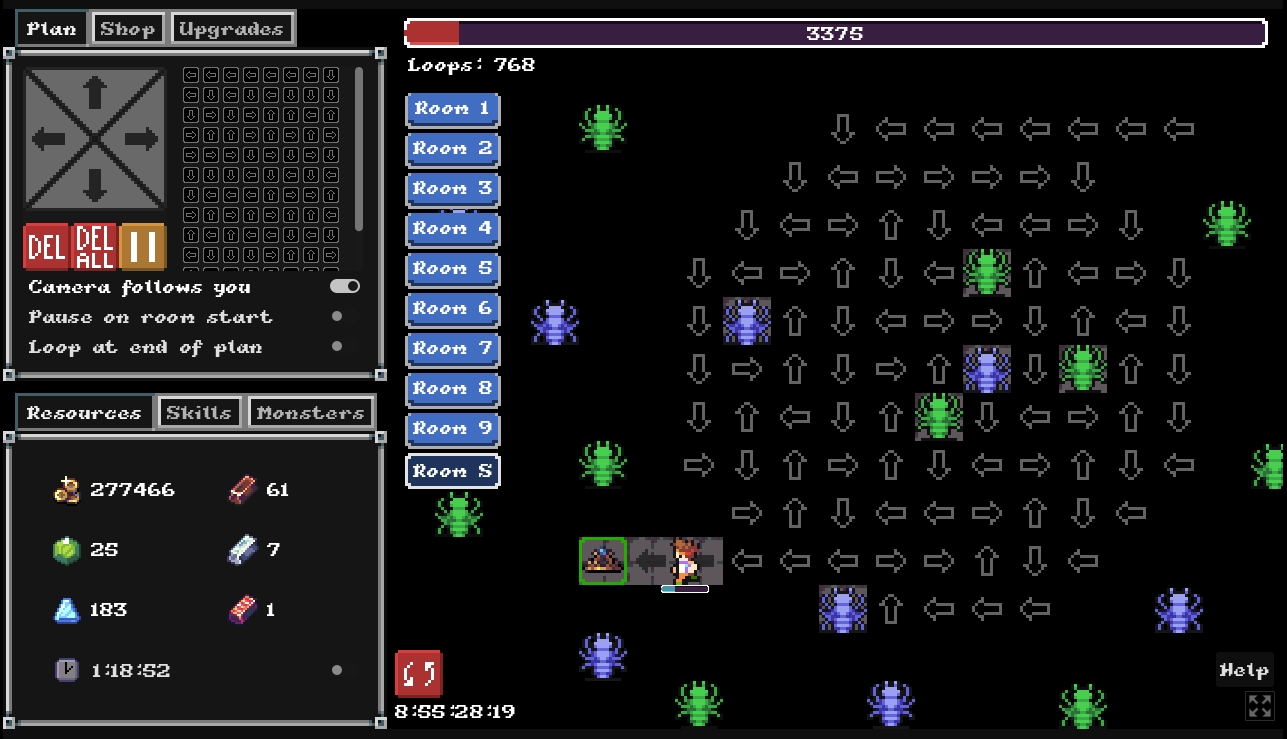 i just left it running for a few hours while i did other things. I think if it was more open with more options instead of linear levels I'd pay for it on steam. if each room had multiple exits that lead to different areas that had area specific upgrades so when u get op in one area u can still play the other areas without being completely op. And when u went to a room for the first time it would add to a map ui